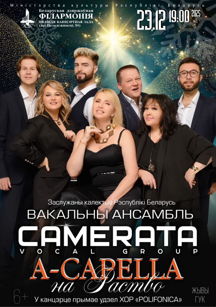 А капелла группа «Камерата» была основана в 1986 в Минске. В 1988 вокалисты представляют джазовую программу на фестивале ансамблей в Паневежисе, Литва. Успех! Еще год спустя в Риге они исполняют авторские произведения, в которых элементы игрового фольклора смешались с приемами фри-джаза. После второго триумфа начинаются масштабные гастроли по всему миру. Группа становится постоянным участником музыкальных фестивалей в Германии, США, Норвегии, Турции, Китае, Иране, Италии, Голландии, Венгрии, Австрии, Польше, Швейцарии, Канаде и России.